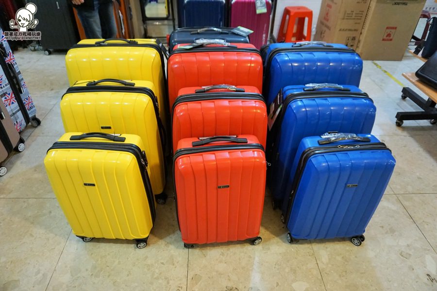 有知名的萬國行李箱、Benetton、Travelhouse等大廠,登機箱21寸、中旅箱24寸、大旅箱27寸通通都有唷!