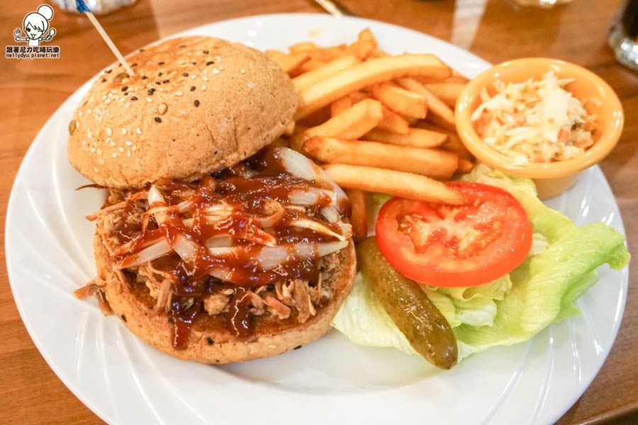 我個人點的BBQ手撕豬肉堡,生菜可以自己搭,還鋪上了邪惡的起司片