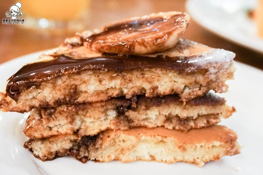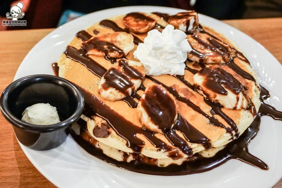 一開始服務生點錯餐,送了法式土司,於是又做了”香蕉巧克力煎餅”