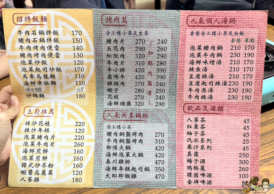 平價的消費讓許多家庭很喜歡,連我朋友常常跑來鹽埕區吃的韓式料理-老韓家