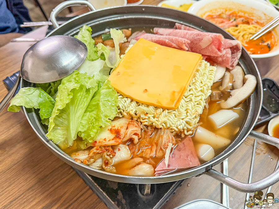 有泡菜、起司、熱狗等等餐點,後面的湯頭會很夠味帶甜,讓我們很喜歡