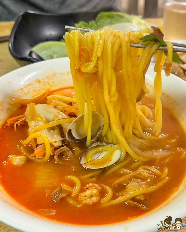 韓國泡麵吃起來口感QQ的,加上部落鍋湯頭不會太濃厚,口味剛剛好