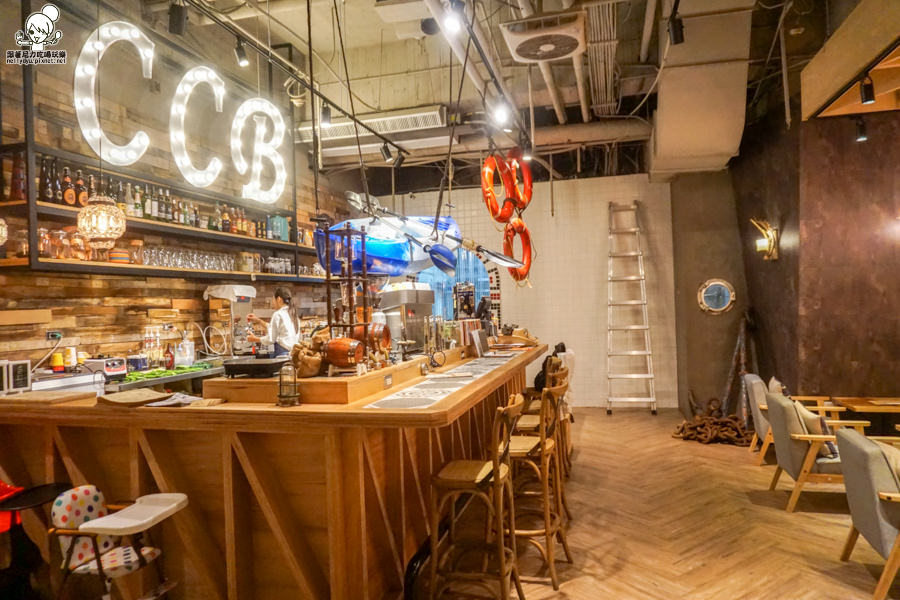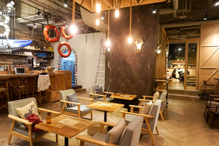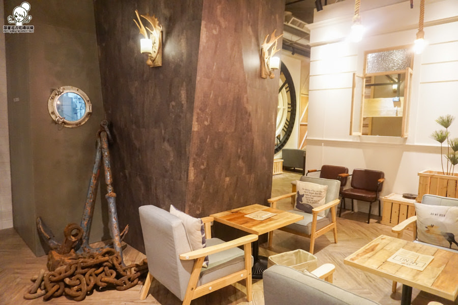 卡菲小食光第四家店選擇在民生路上,寬敞環境搭配休閒海洋輕工業風