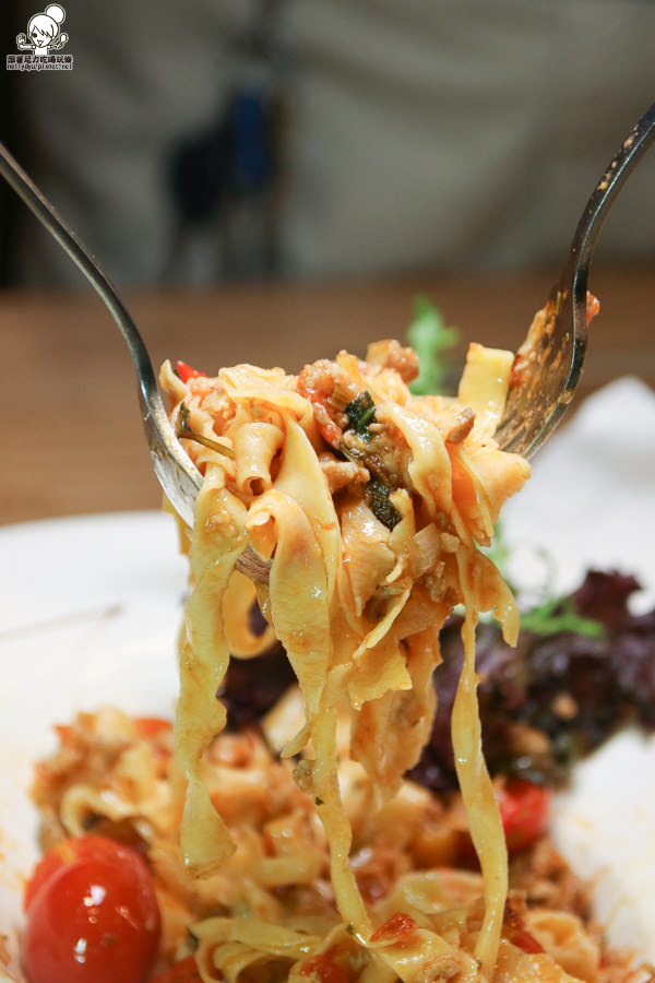 店家使用手工義大利麵,屬於寬麵條,可以吸付更多醬汁,吃起來更夠味