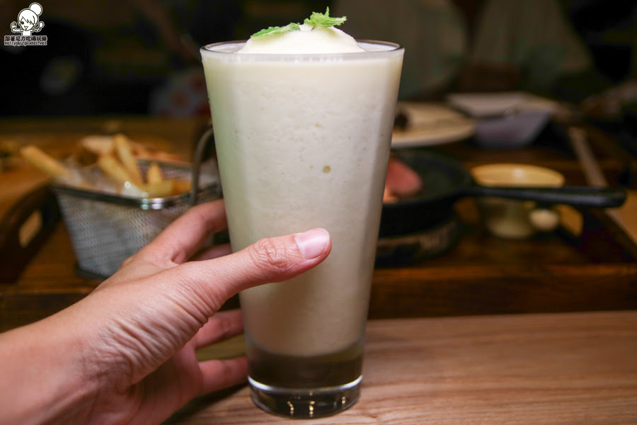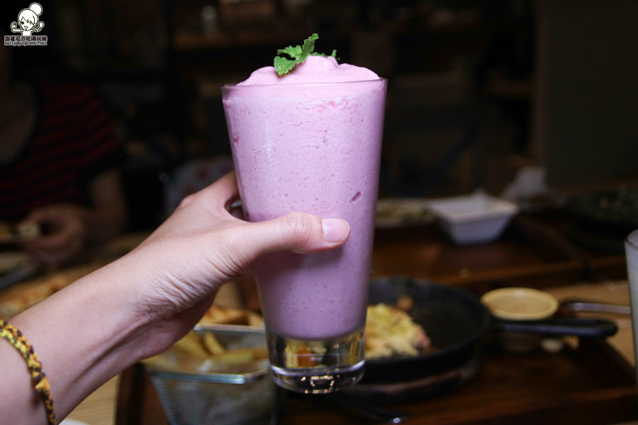 勾起童年滋味的金蘋果牛奶果昔,使用的金蘋果養樂多調配