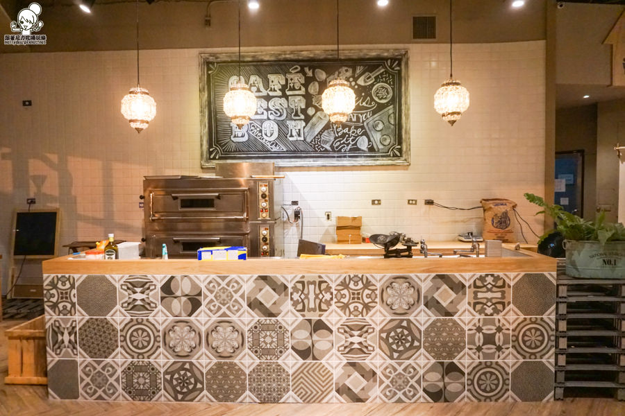 在一進門口的檯面與烤箱,就是主廚製作手工披薩的現場