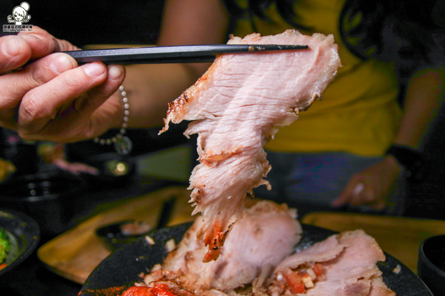 松阪豬帶有軟嫩與微脆口感,可以感受一下無沾醬的原始鮮味