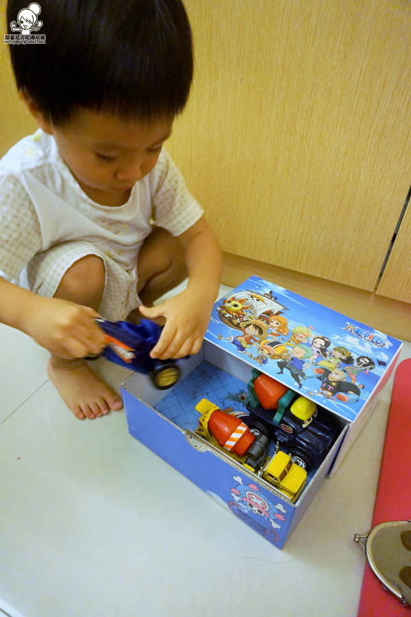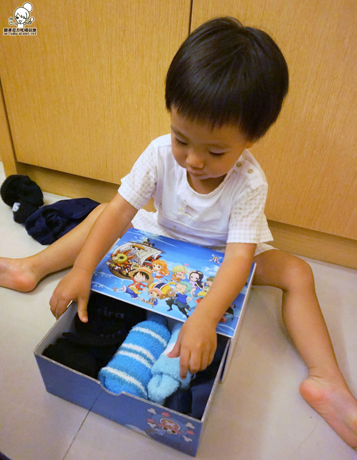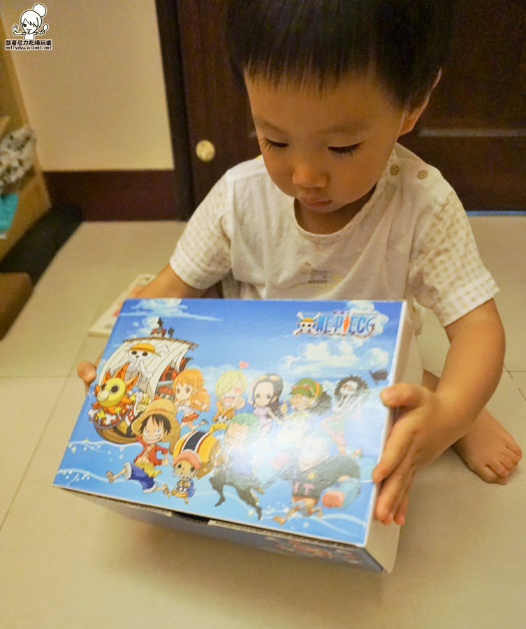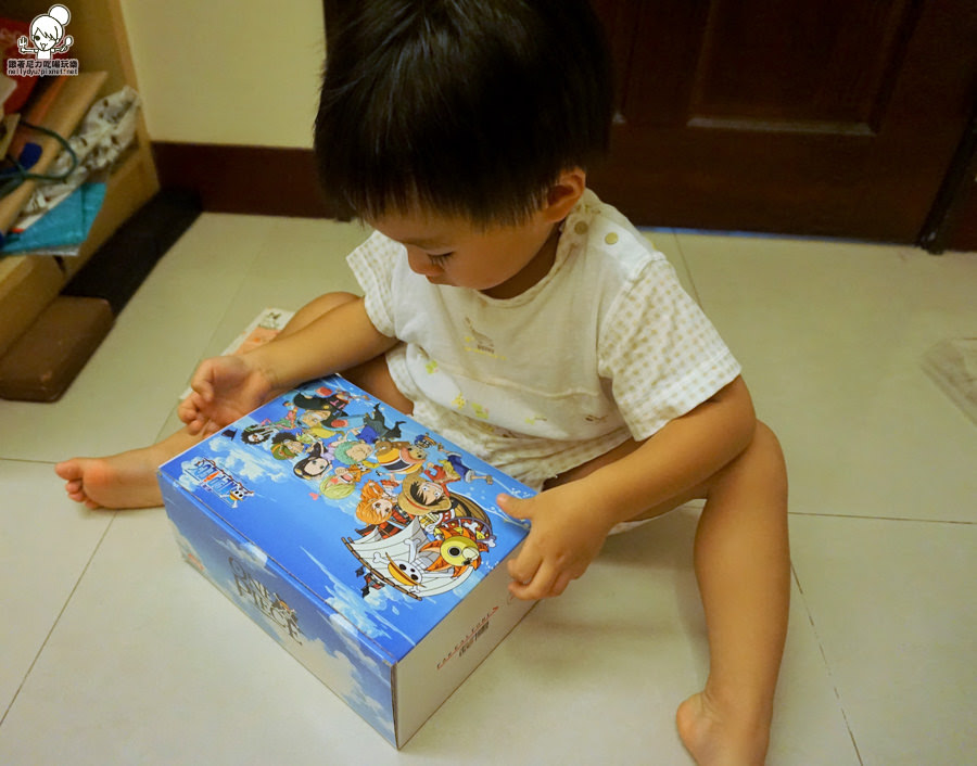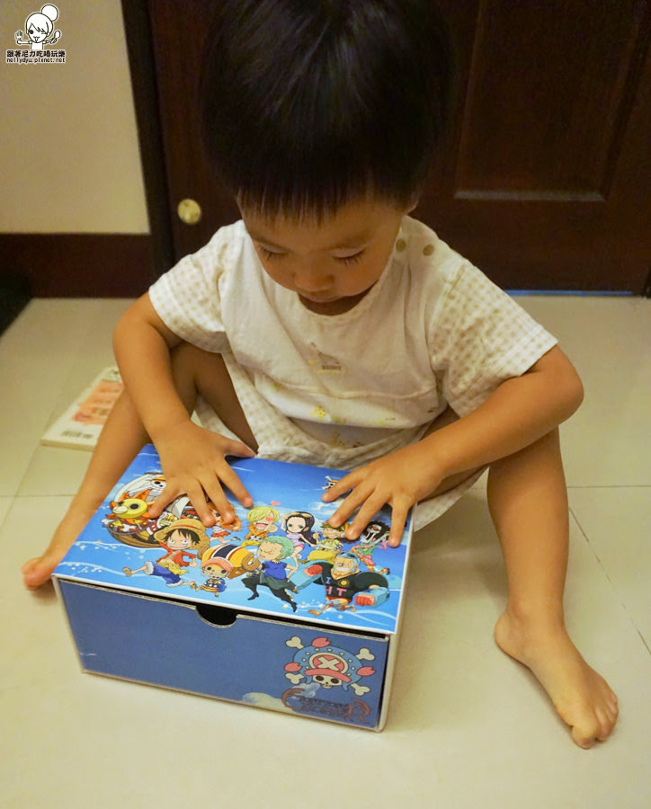 一收到收納盒,小泥巴超開心的,因為常常跟在他爸爸旁邊一起看 航海王漫畫
