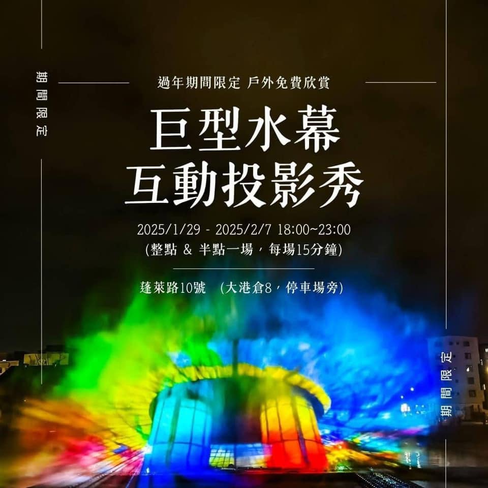 水幕秀地址:高雄市鼓山區蓬萊路10號 (大港倉8,停車場旁)