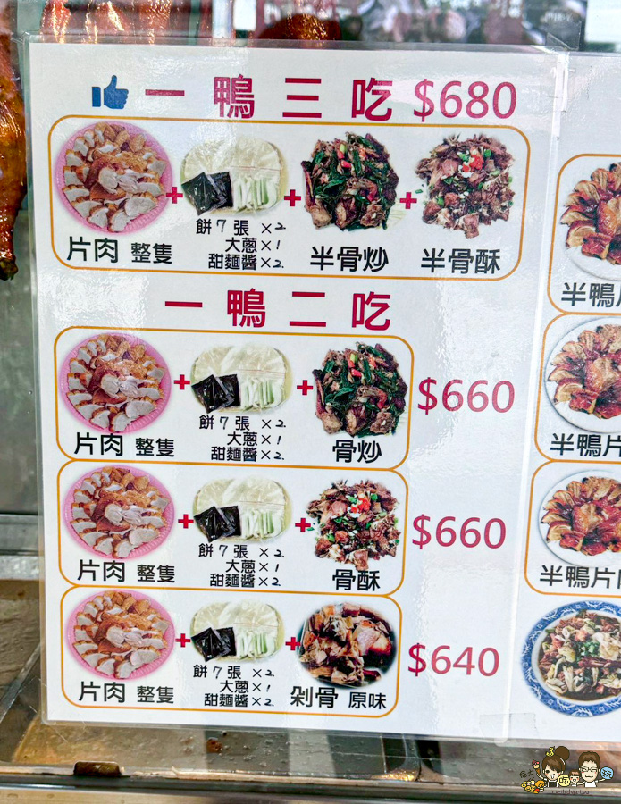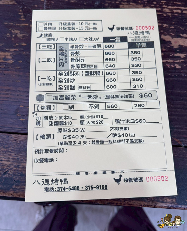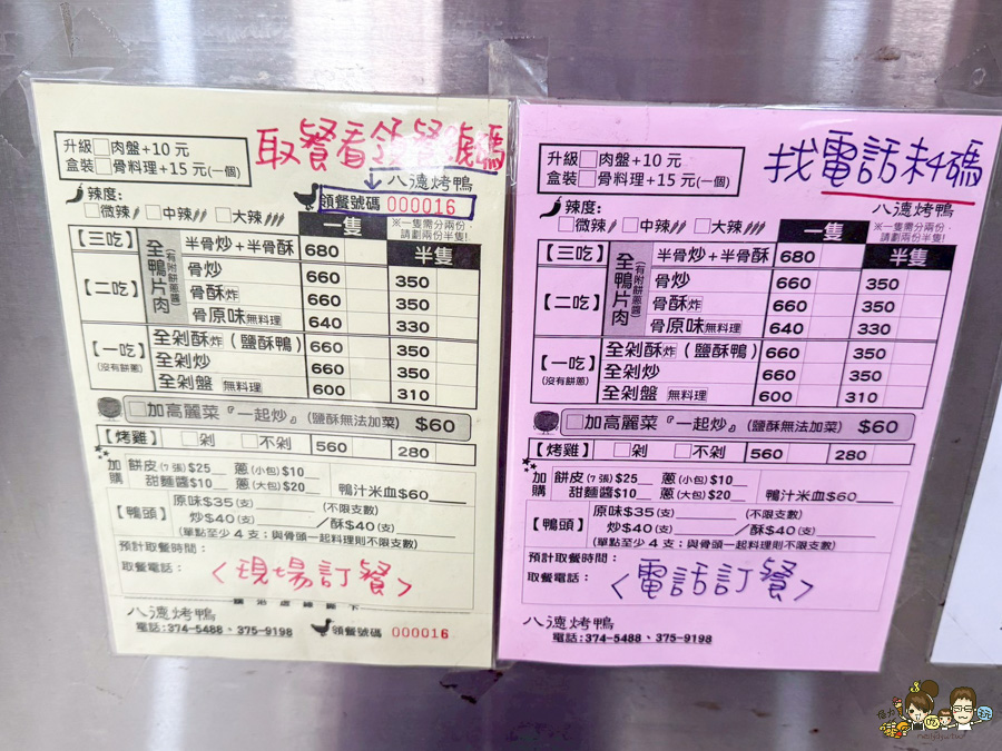 八德烤鴨 菜單與價格(菜單是舊的價格)