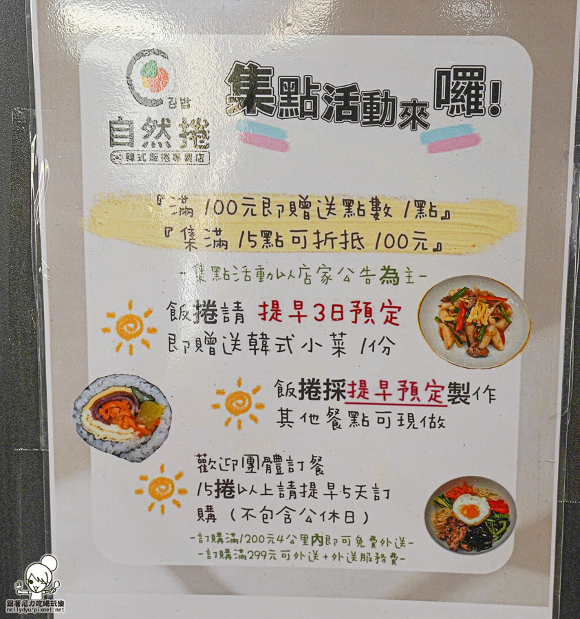 飯捲可以提早三天預訂,預定還贈送韓式小菜一份唷!