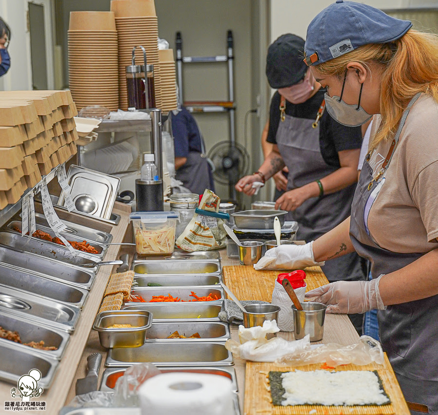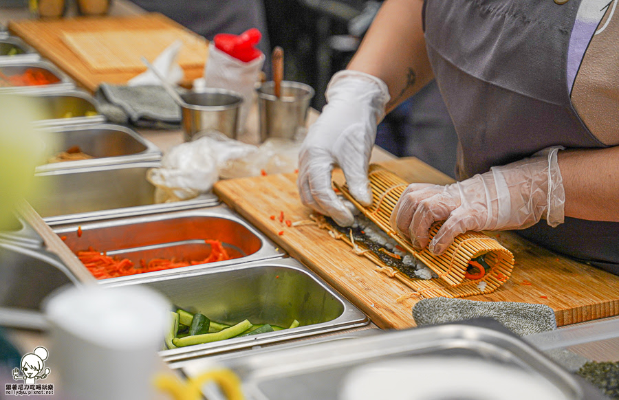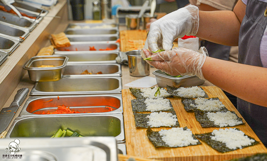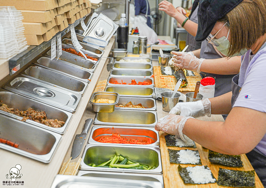 還可以看到刷一整排的服務人員不停的現場製作,每天都暴單的 自然捲韓式紫菜飯捲