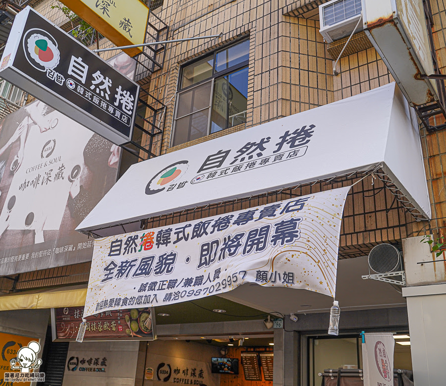 自然捲韓式紫菜飯捲搬到咖啡深藏旁邊,招牌稍微被遮蓋住~要稍微睜大眼睛看!