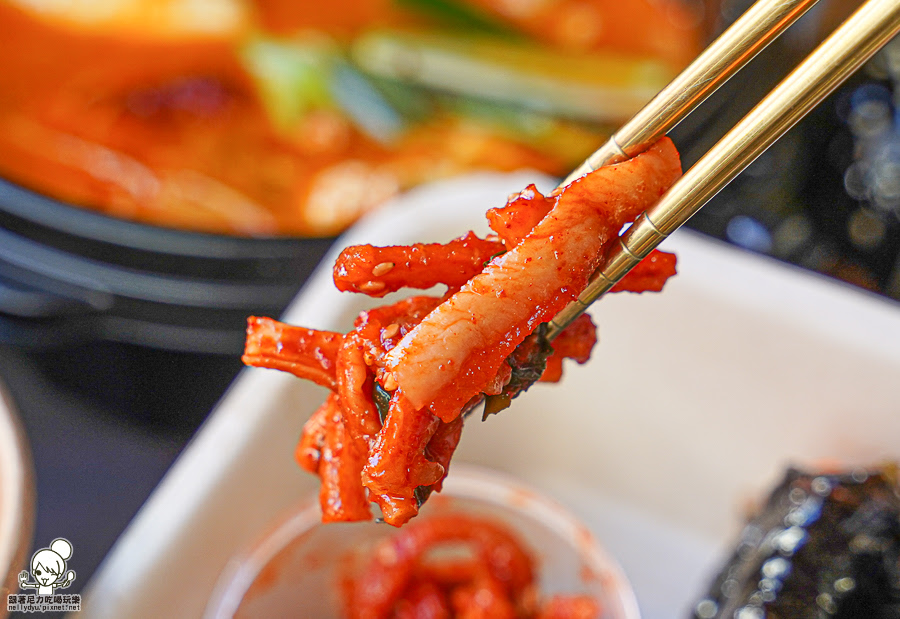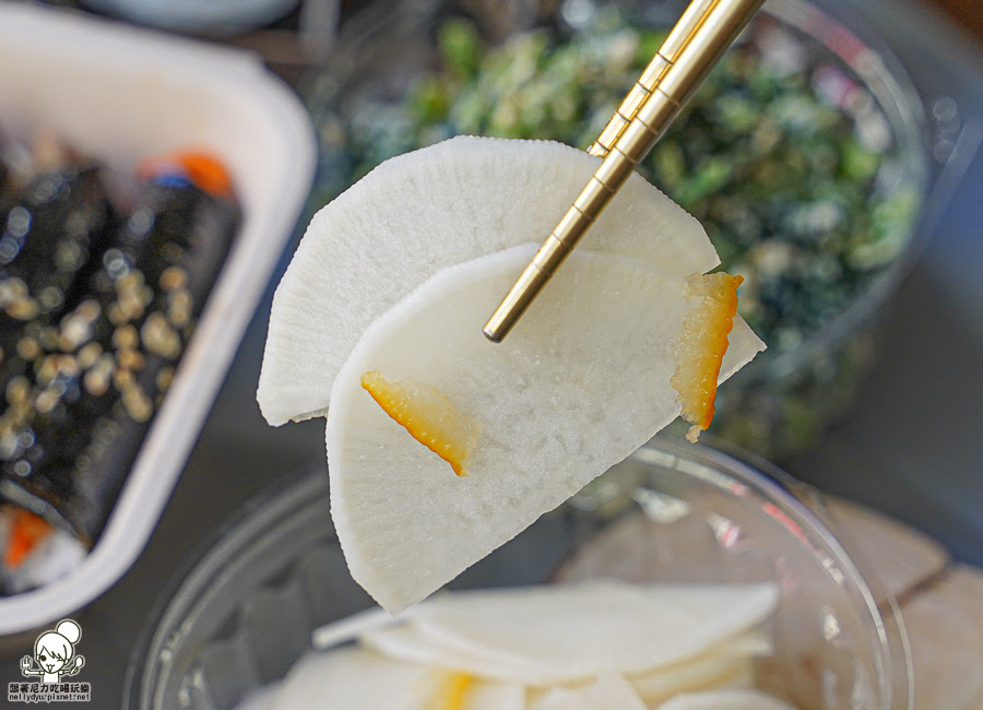搭配旁邊嚴格挑選的韓國辣蘿蔔乾,提出層次香氣尾韻帶辣度,有夠好吃