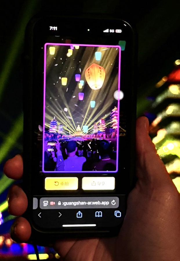 最終會有AR環繞式的天燈顯示於手機,可以互動拍照留影