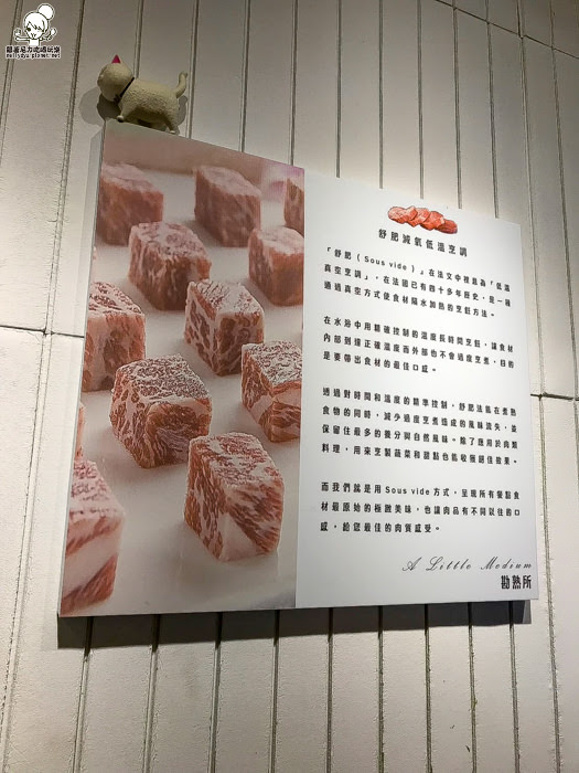 朋友推薦介紹的 勘熟所-A Little Medium,使用低溫烹調舒肥法料理肉品,鎖住營養帶出嫩度