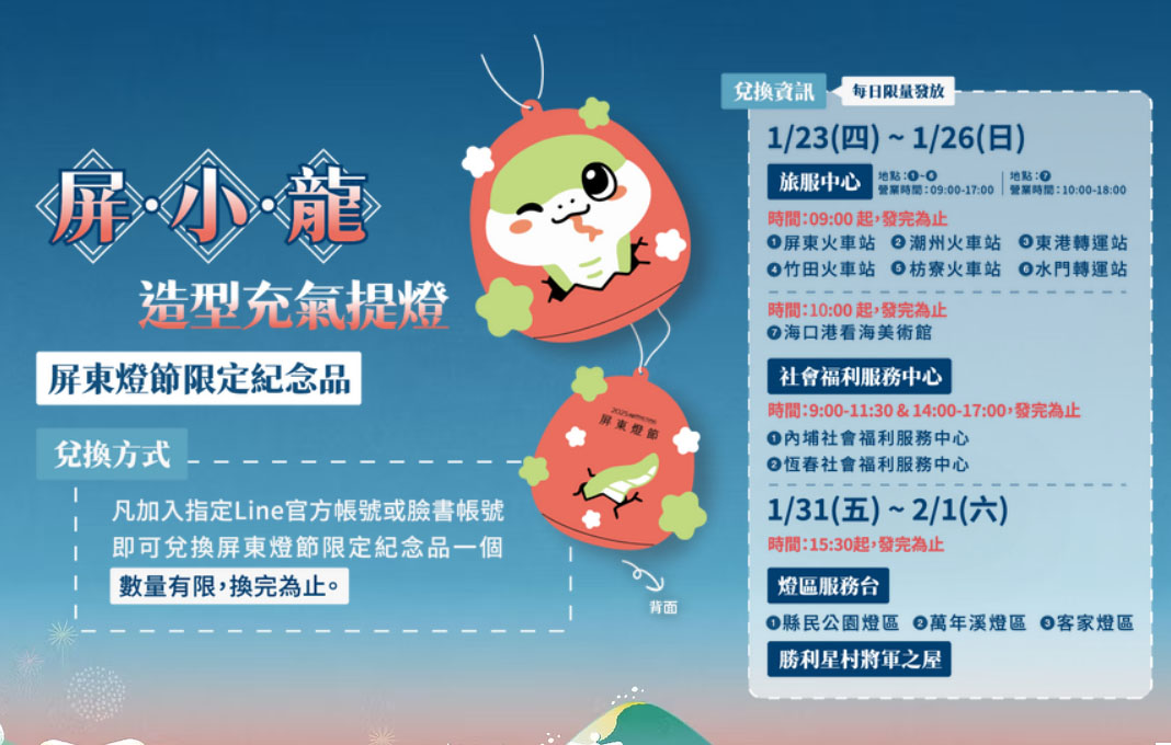 即日起到1/25於屏東定點都可以免費發送(每日限量,早點卡位領取)