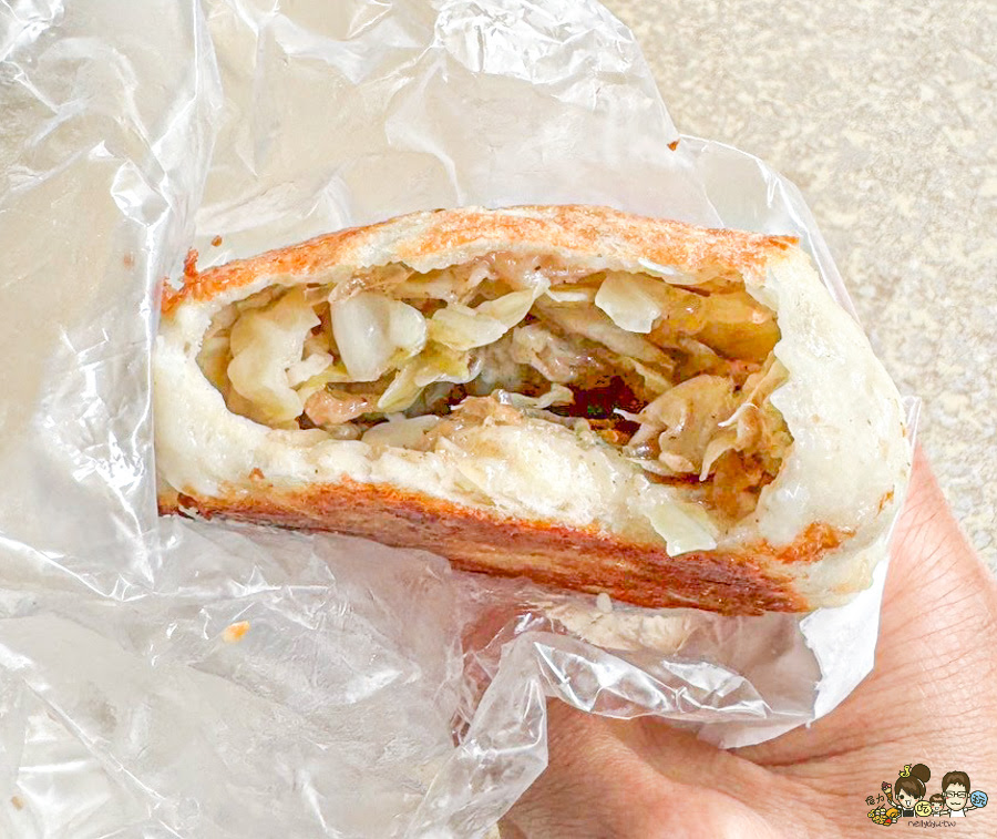 高麗菜包帶有酥脆外皮,熱呼呼燙口