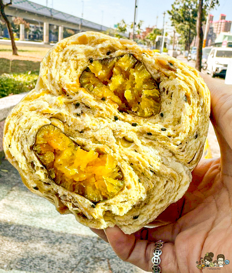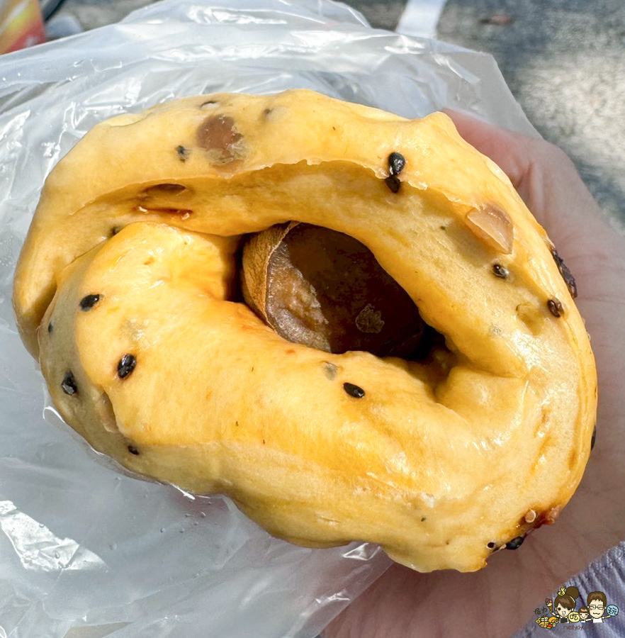 中間真的夾入招牌地瓜,帶皮的一整條地瓜