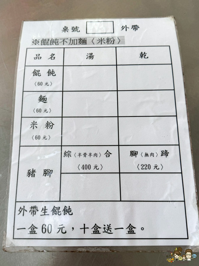 販售的東西很簡單、,豬腳、冬粉、麵、餛飩