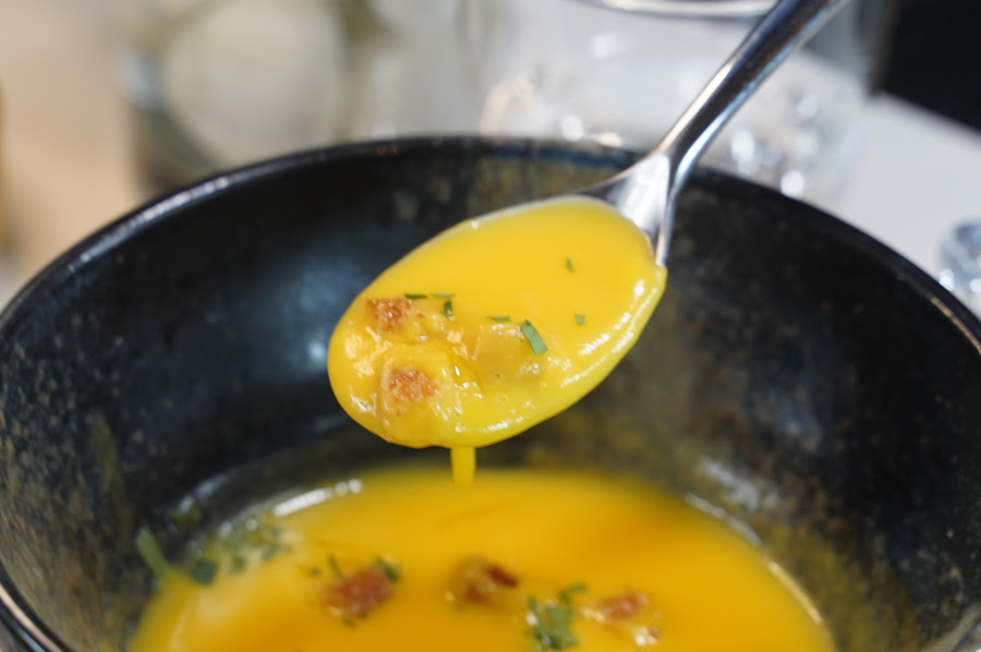 主廚特別選用台灣品種的阿嬌南瓜製作南瓜湯