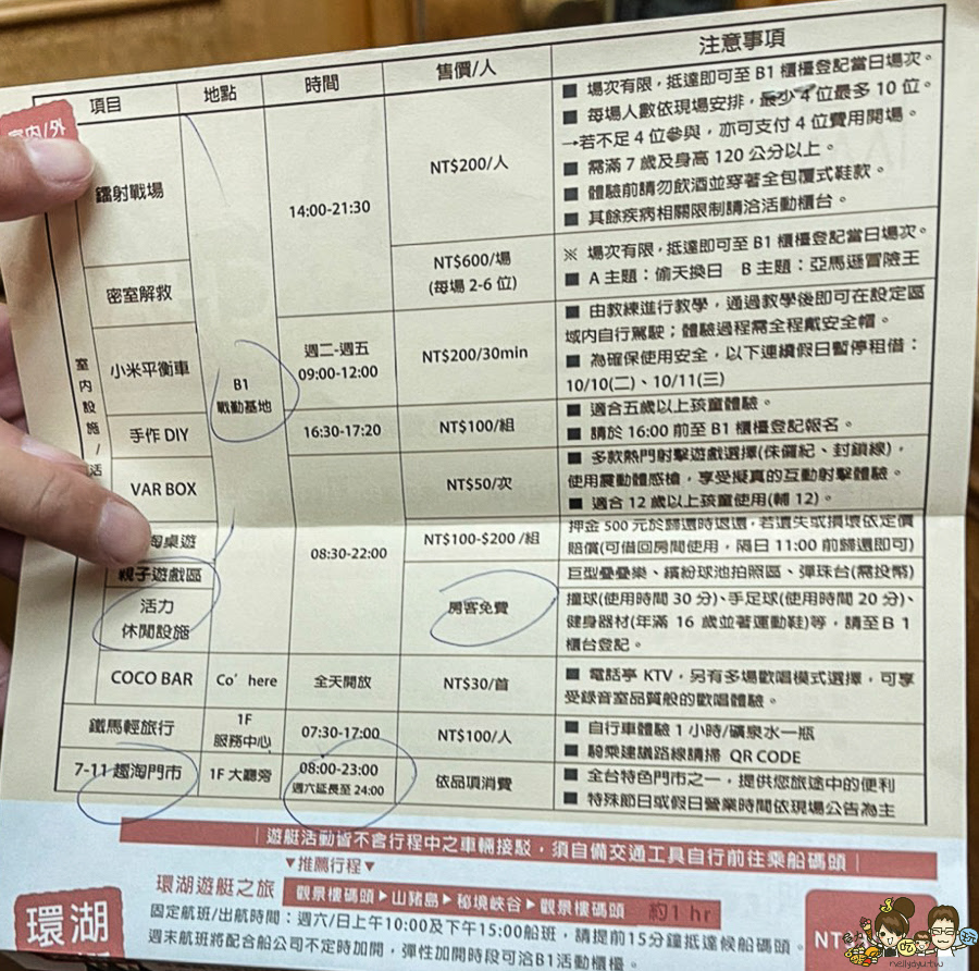 CHECK IN的時候都會給於設施說明,會備註免費、付費,可以注意一下