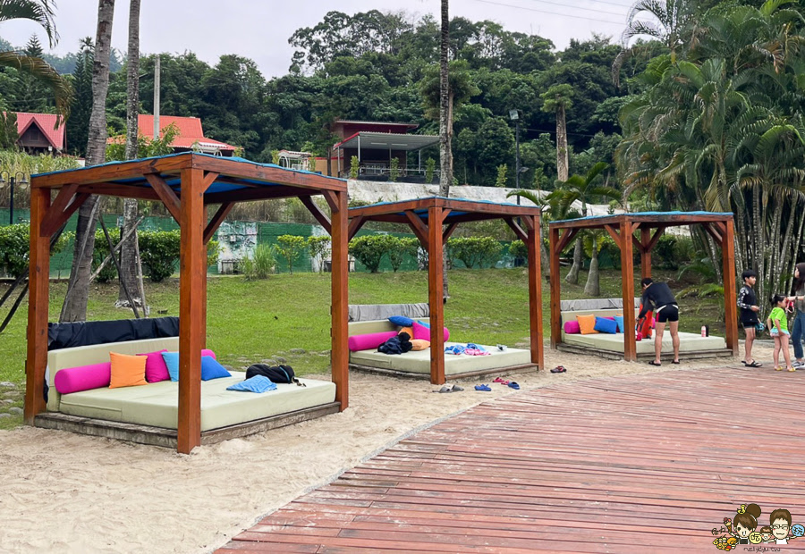 旁邊的休息區很度假風,還有小沙池可讓孩子完