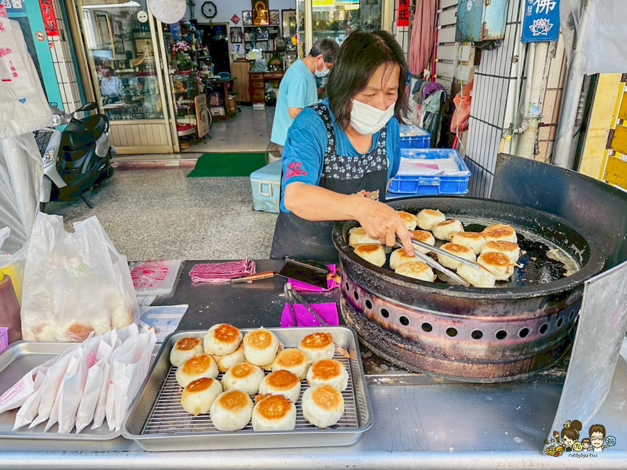 水煎包算是非常受歡迎的台式下午茶,老闆在後方忙著包製水煎包