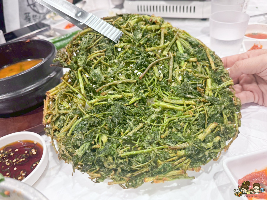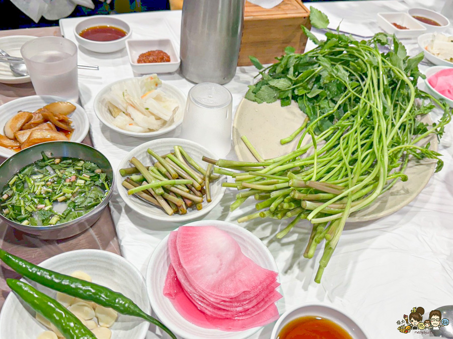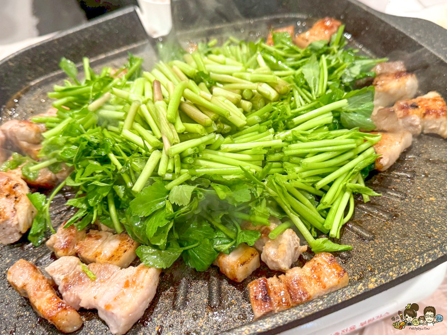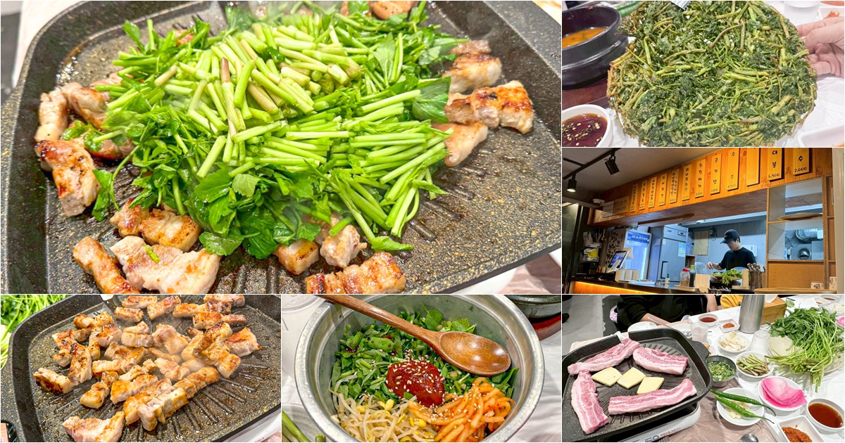 來韓國就要吃特色的水芹菜烤肉,推薦弘大這間巷弄 吃草的豬 水芹菜烤肉
