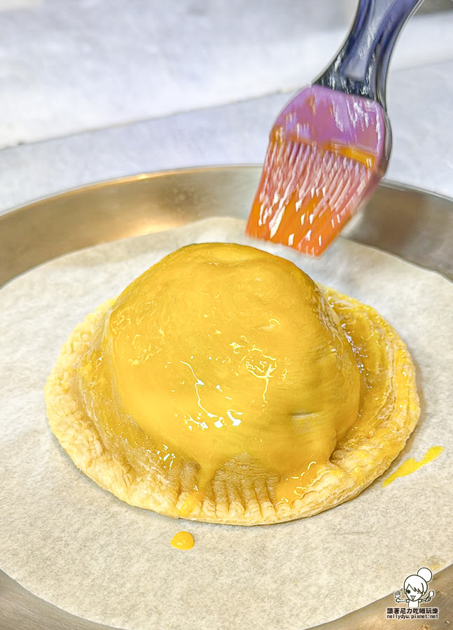 最外面再包上酥皮,表面刷上蛋液