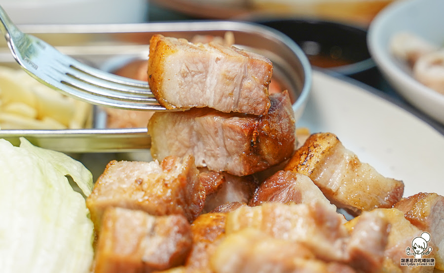 油花香氣會於嘴巴散發開來,吃完原味再搭配蒜片、韓式泡菜、包肉生菜混搭吃