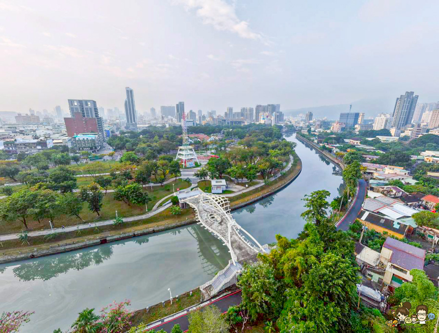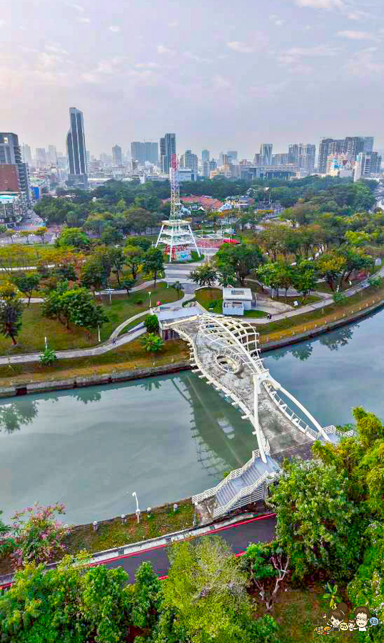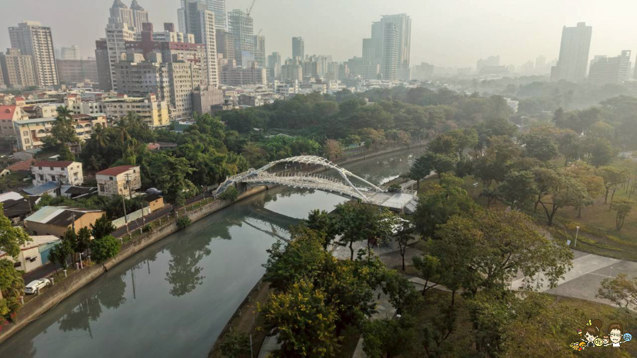 還可以遙望到龍骨橋,愛河之心三橋之一又稱「農21吊橋」