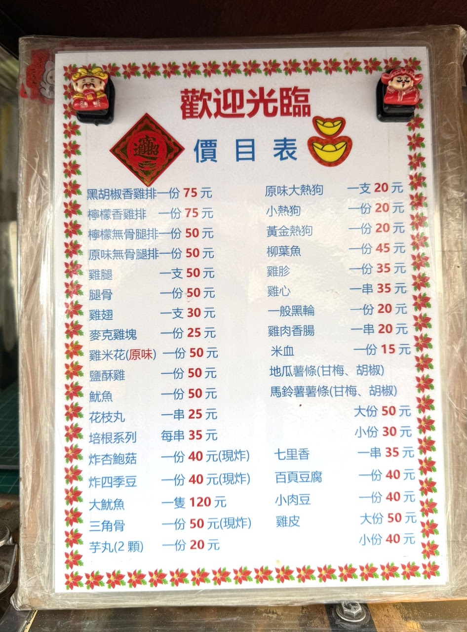 平台上炸物大概十多種,很多都在菜單上,現點現炸~可以直接跟老闆點餐