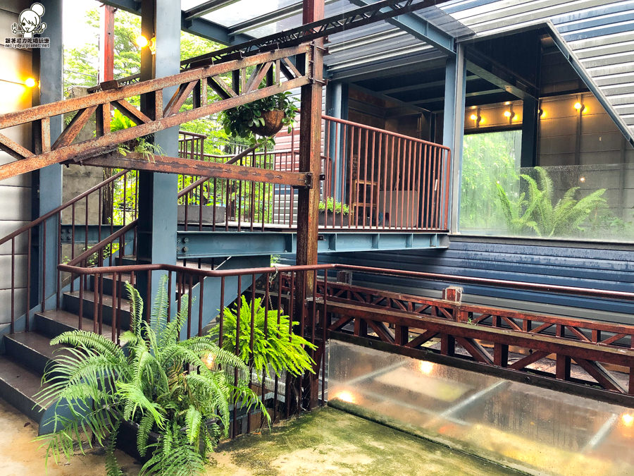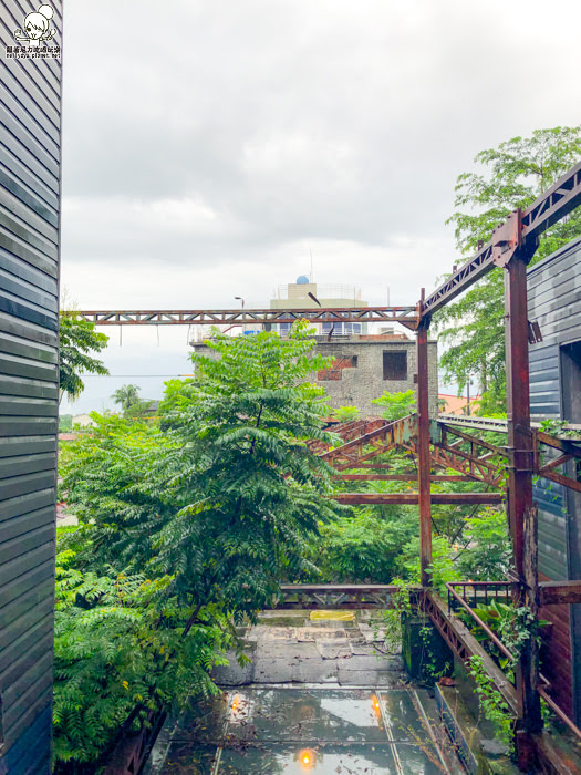 二樓是鐵皮屋廁所,可以看到工業風頹廢搭建的外觀