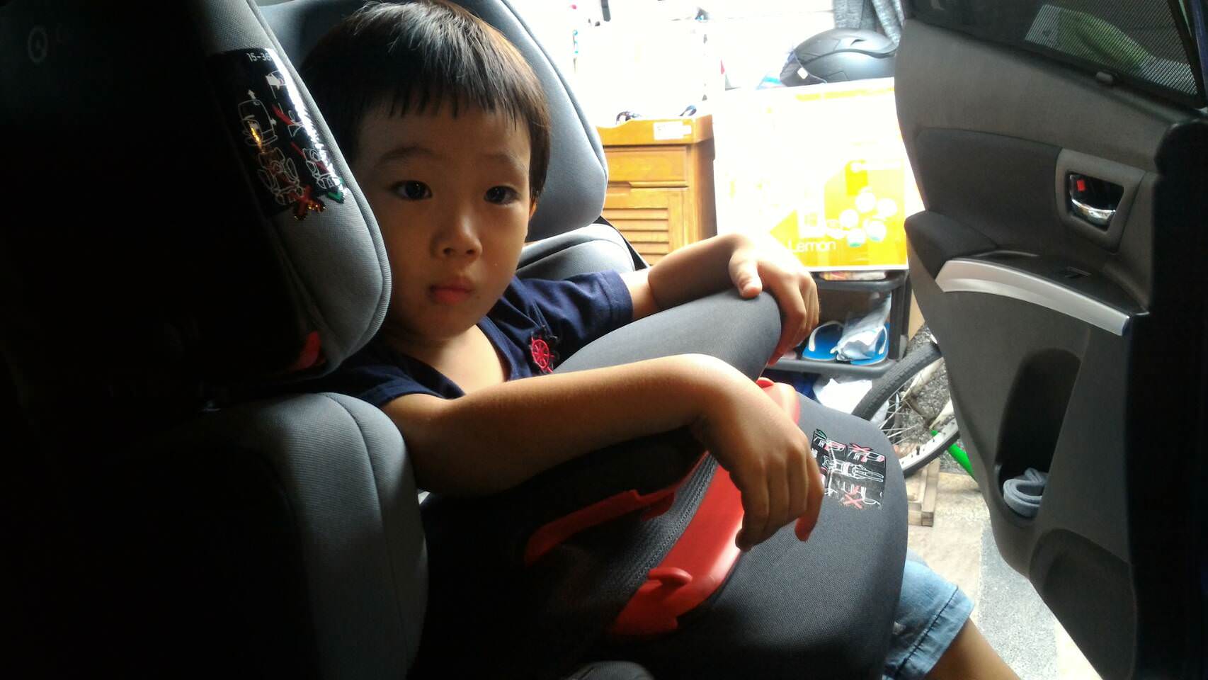 可能之前的不透氣,加上整個人很瘦小,會陷入安全座椅裡面,長途搭乘會讓小朋友覺得不舒服