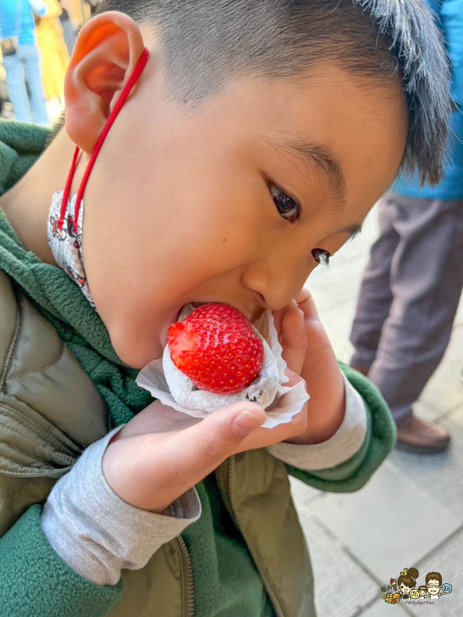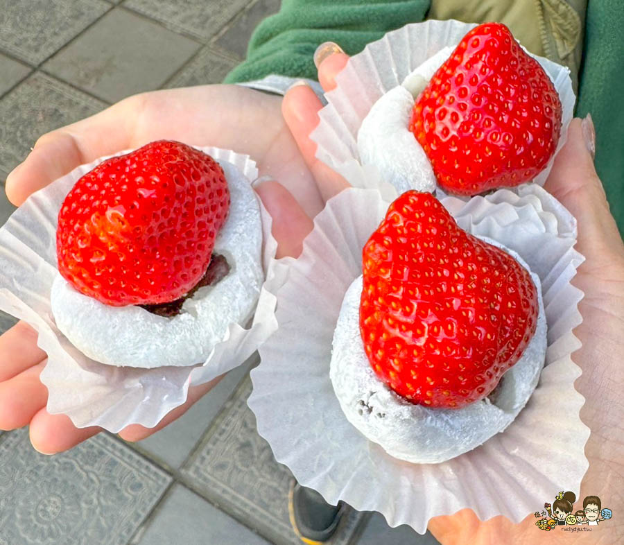 很大顆在地草莓,加上很甜的紅豆泥、軟綿麻糬