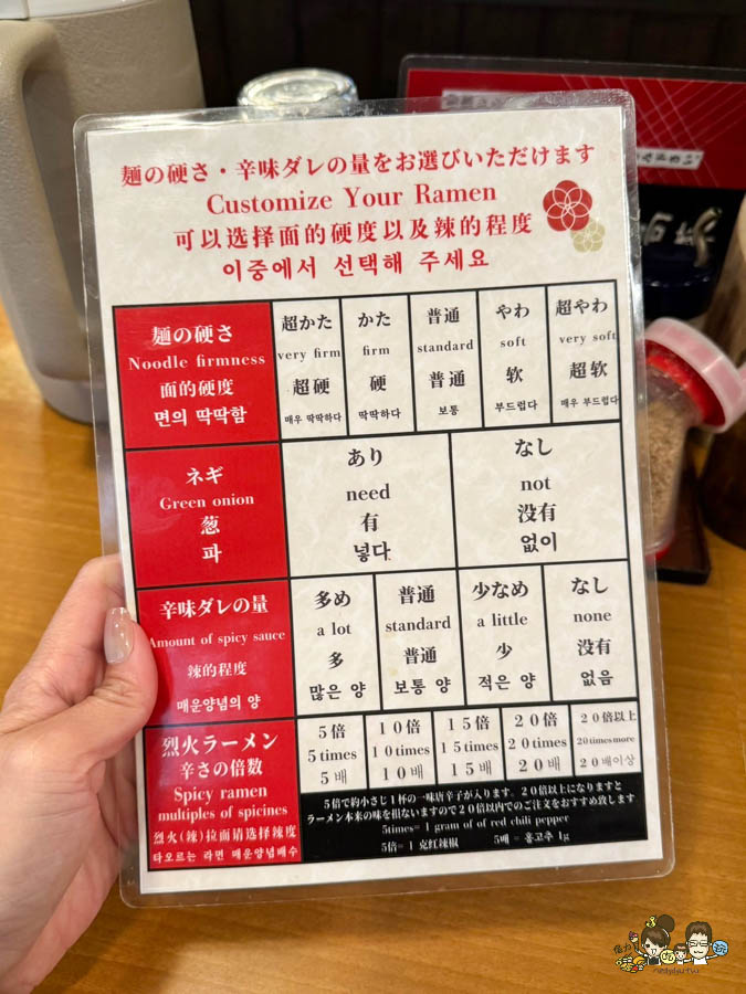 加上旅客很多,會給菜單挑選麵條的軟硬度、湯頭的濃厚、辣味