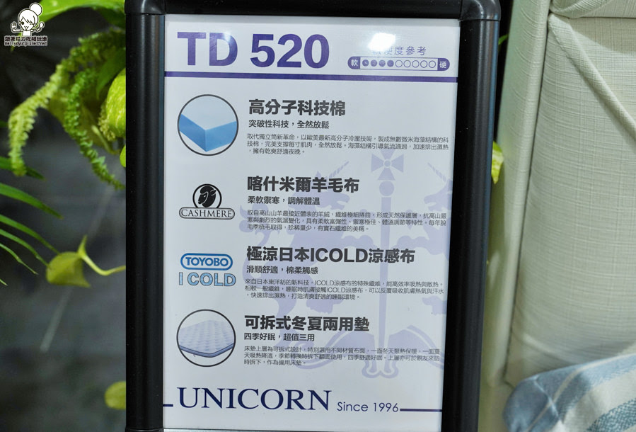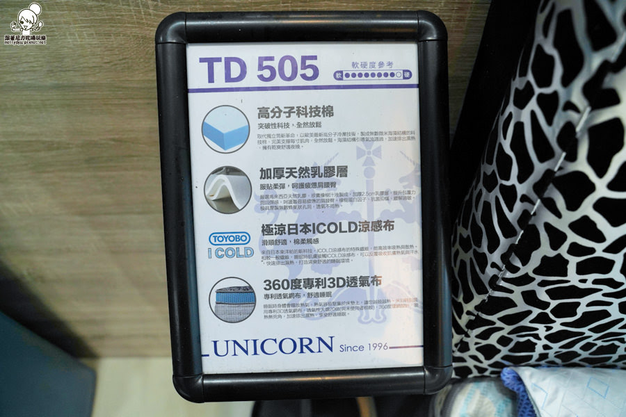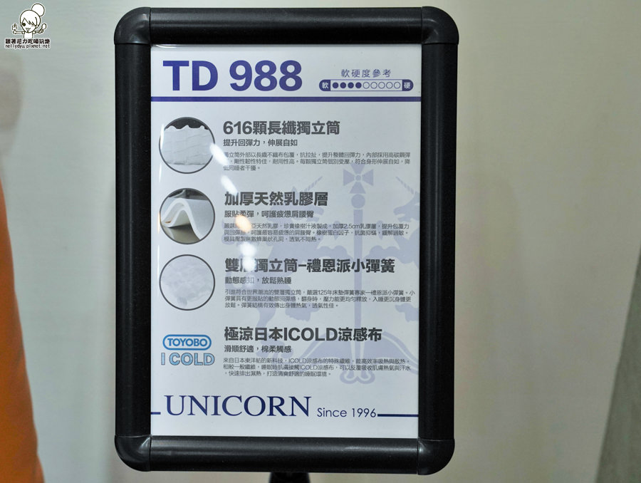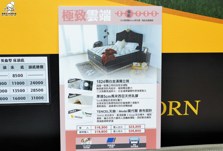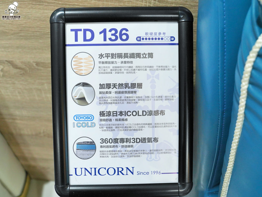 讓我覺得很貼心的是每張床墊的解說軟硬度的標示