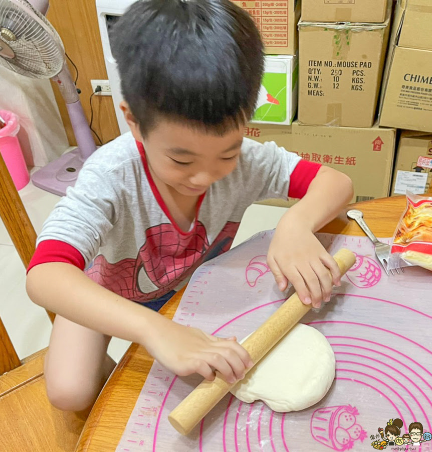 就可以拿出桿麵棍讓孩子自己把玩,之後再來作修整即可