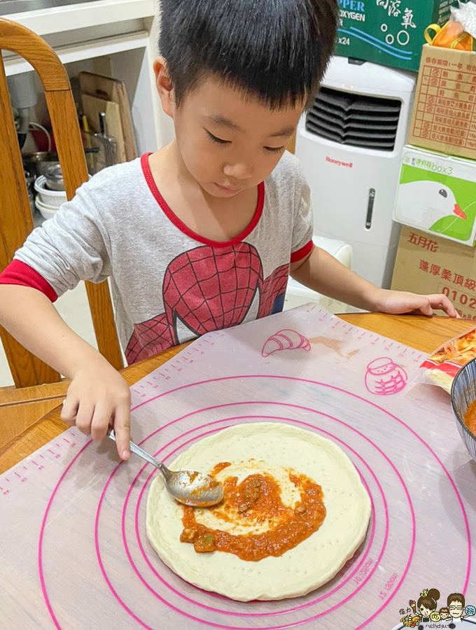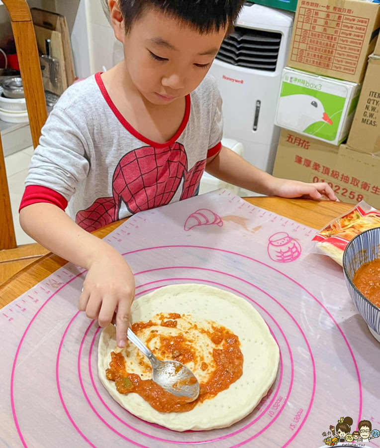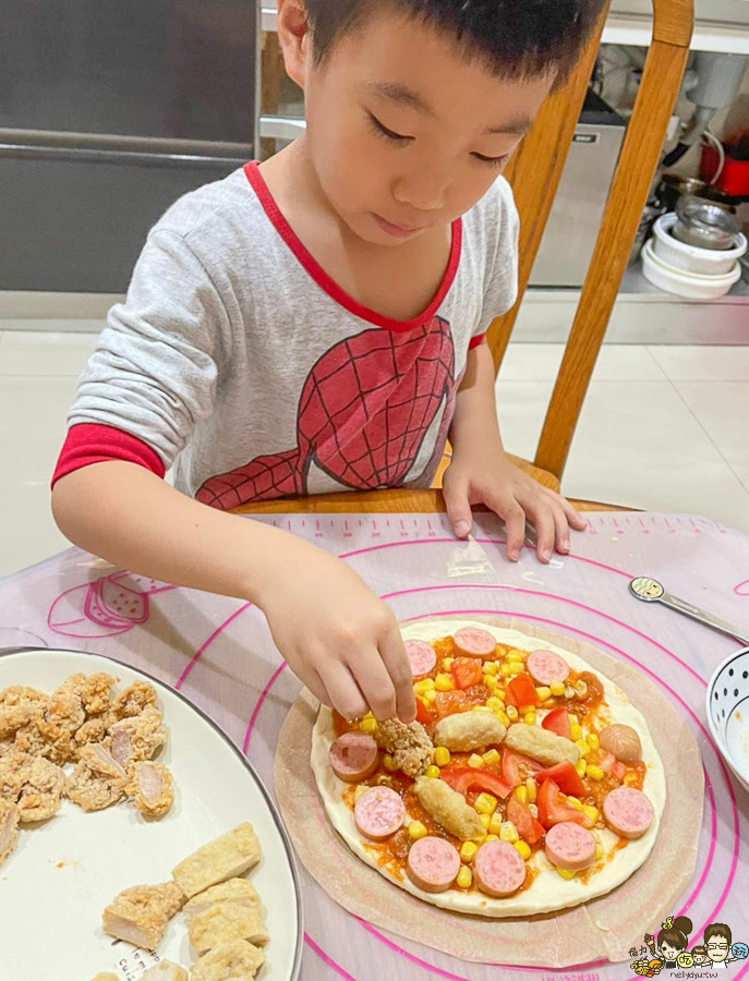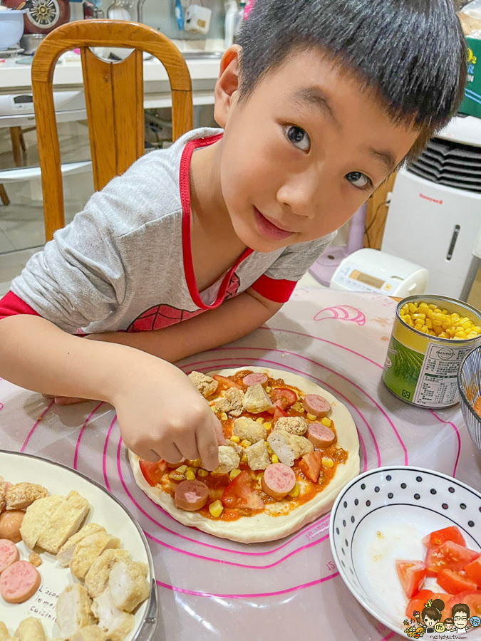 加上製作披薩是孩子提的,我就來滿足他想要的