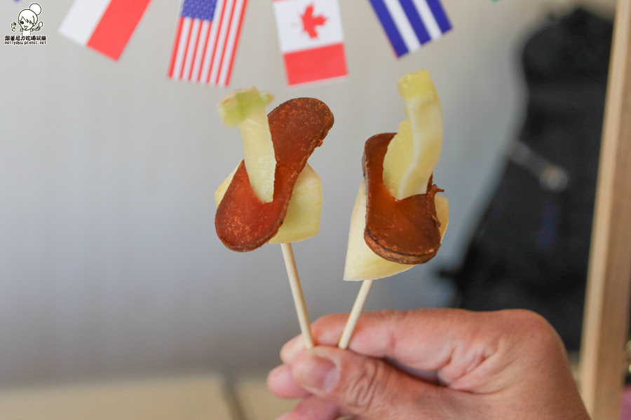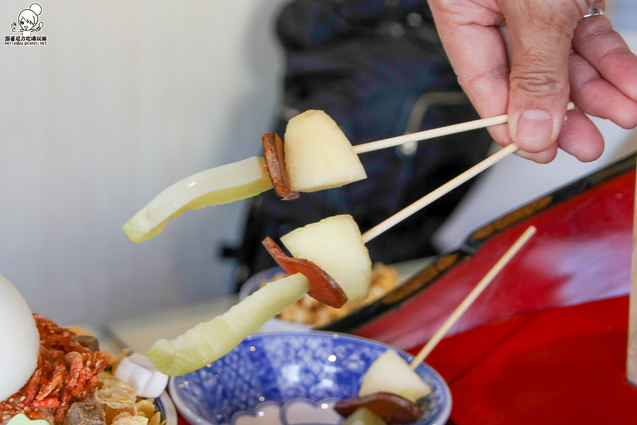 貴三三的油魚子搭配蘋果、古早味芒果青,襯托清甜香氣