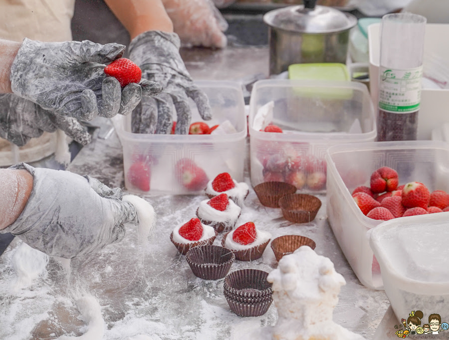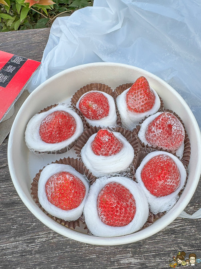 一邊散步就秒殺吃完的爆水嫩草莓龍鬚糖,好好吃