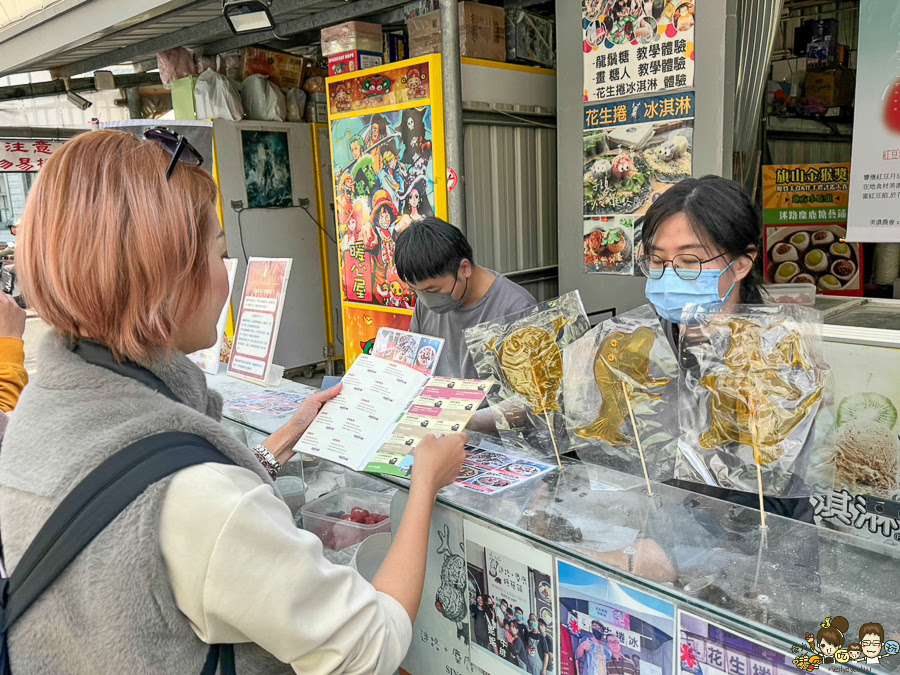 拿手冊上的優惠券,就可以用100元買到 龍鬚糖1盒+畫糖人1支+花生捲冰1份