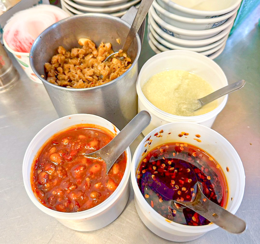 在泰國還可以加砂糖及魚露,吃起來口感層次就比較多,還有附白蘿蔔清湯