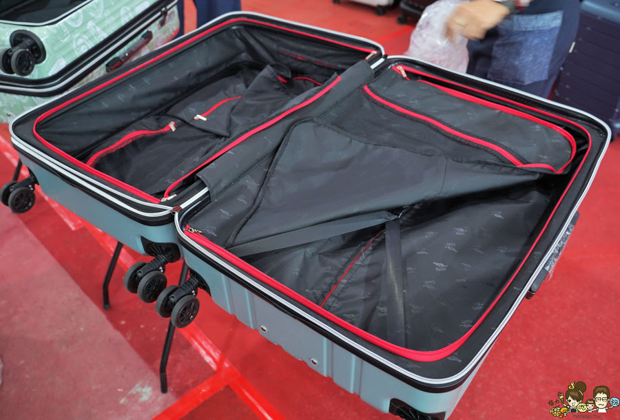 也都有防爆拉鍊、可以擴充設計、靜音輪子,還有可以吊掛的伸縮掛勾