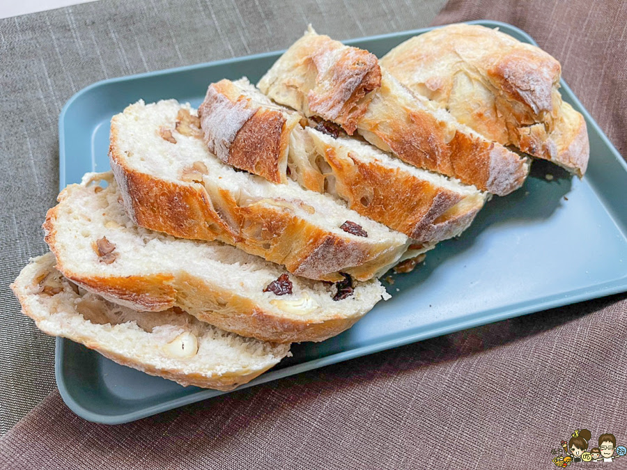 讓外皮帶有酥脆咬勁,麵包內保有軟綿濕潤口感