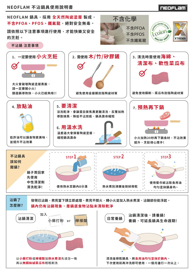 不沾好清潔,減少清潔劑用量、如果不會太油膩烹飪,我都會用軟布清潔、很快速