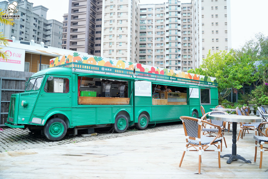 點餐區在室內,果昔是在戶外的巴士車上面製作
