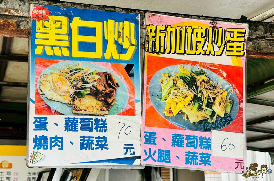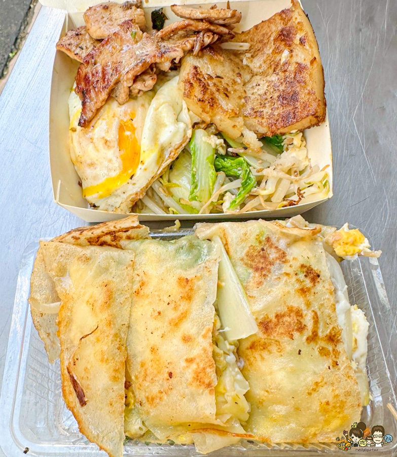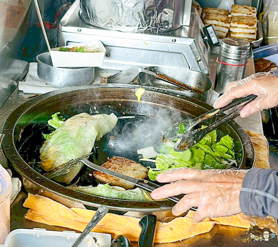 煎蛋餅、煎燒肉、蘿蔔糕、炒蔬菜、煎小煎包
