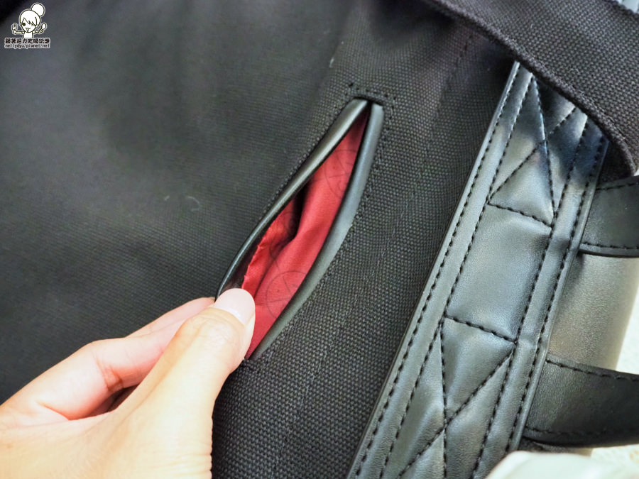 袋子背後還有暗袋,可以讓我放置手機好拿取